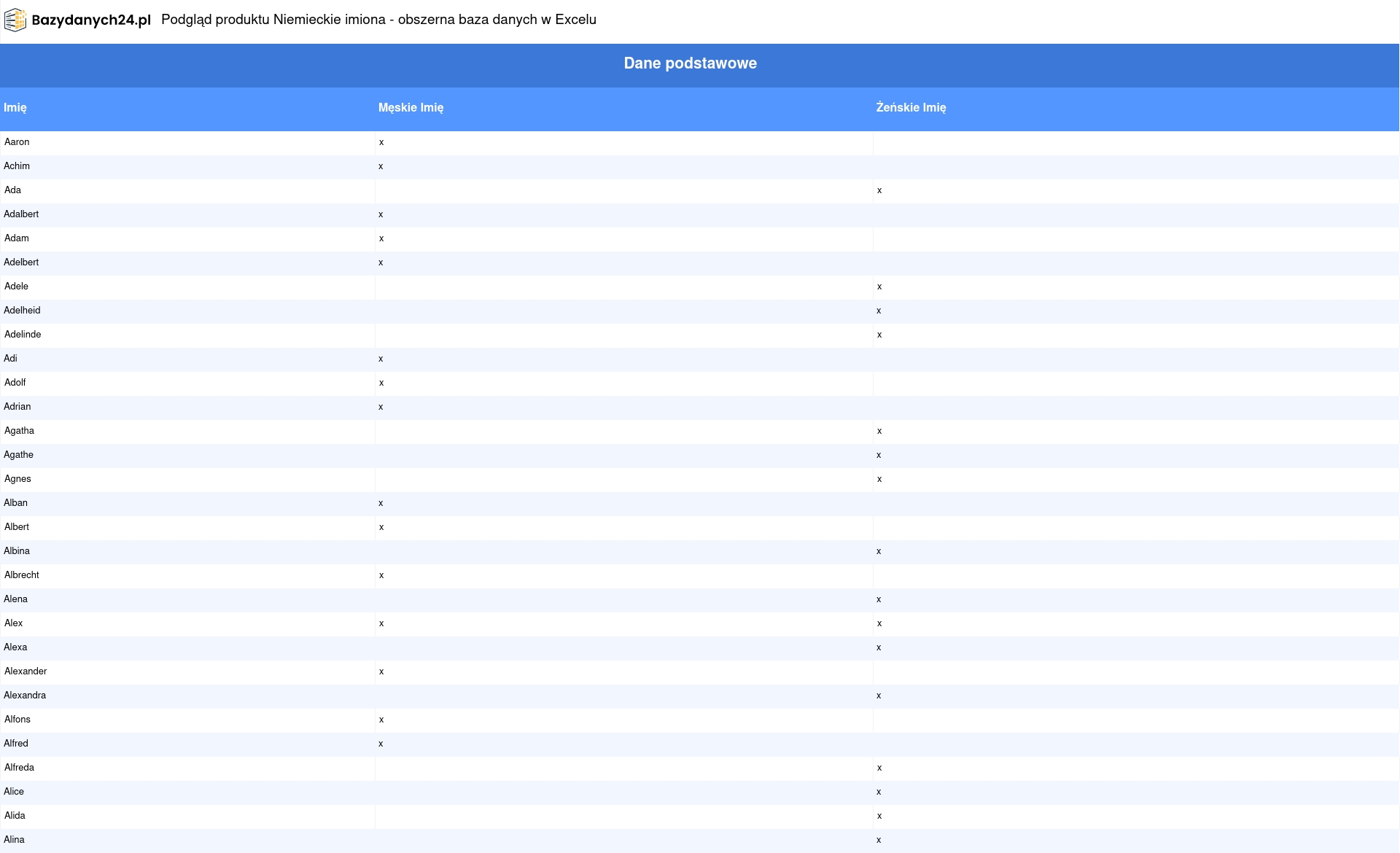 Opis bazy danych niemieckich imion